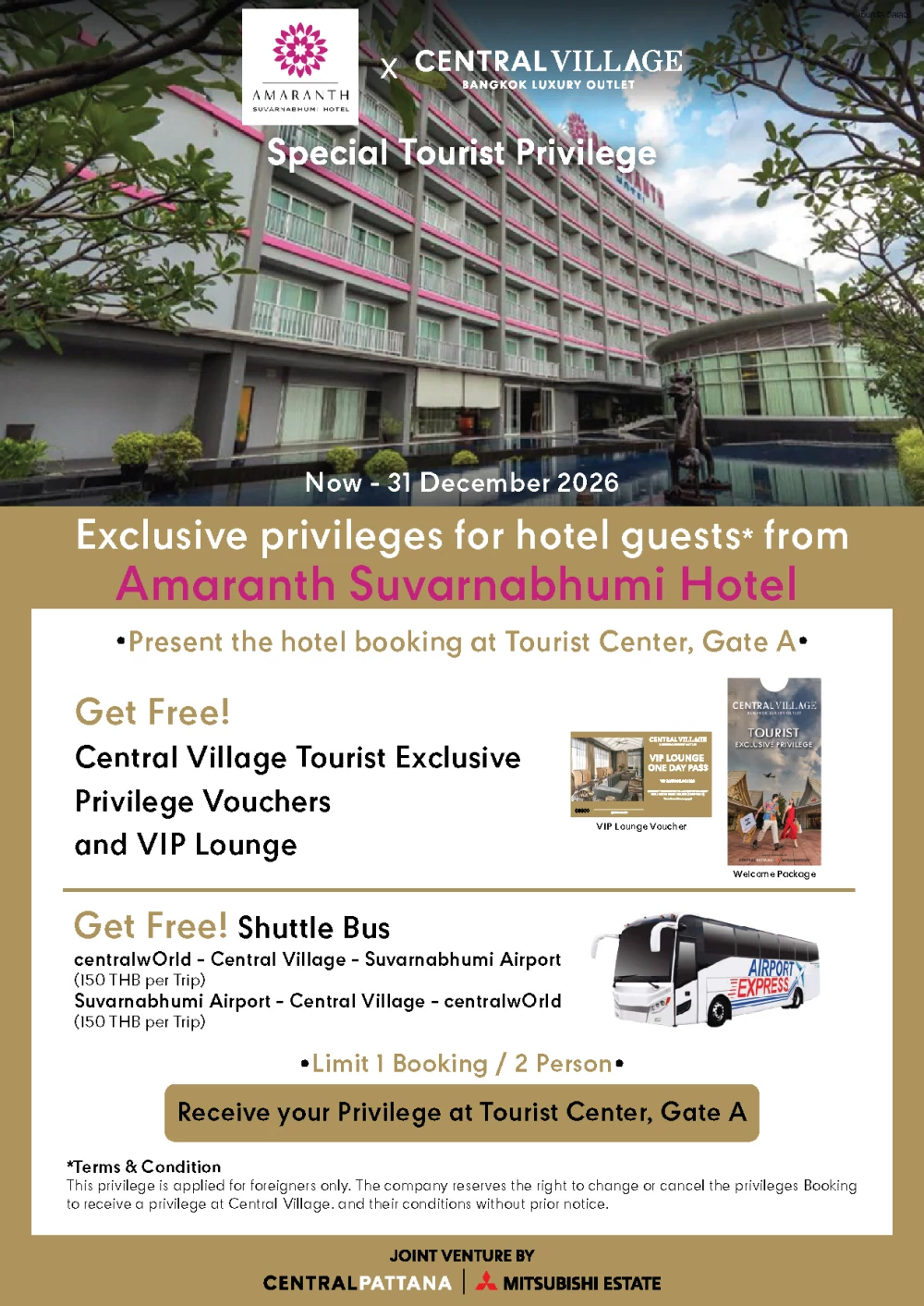 AMARANTH SUVARNABHUMI HOTEL X CENTRAL VILLAGE SPECIAL PRIVILEGE