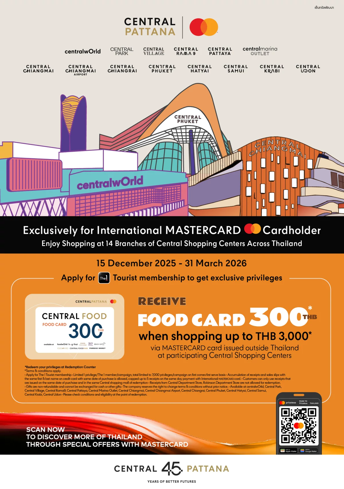 RECEIVE FOOD CARD valued THB 300 when shopping at shops in Central Village Outlet with accumulate spending up to THB 3,000*